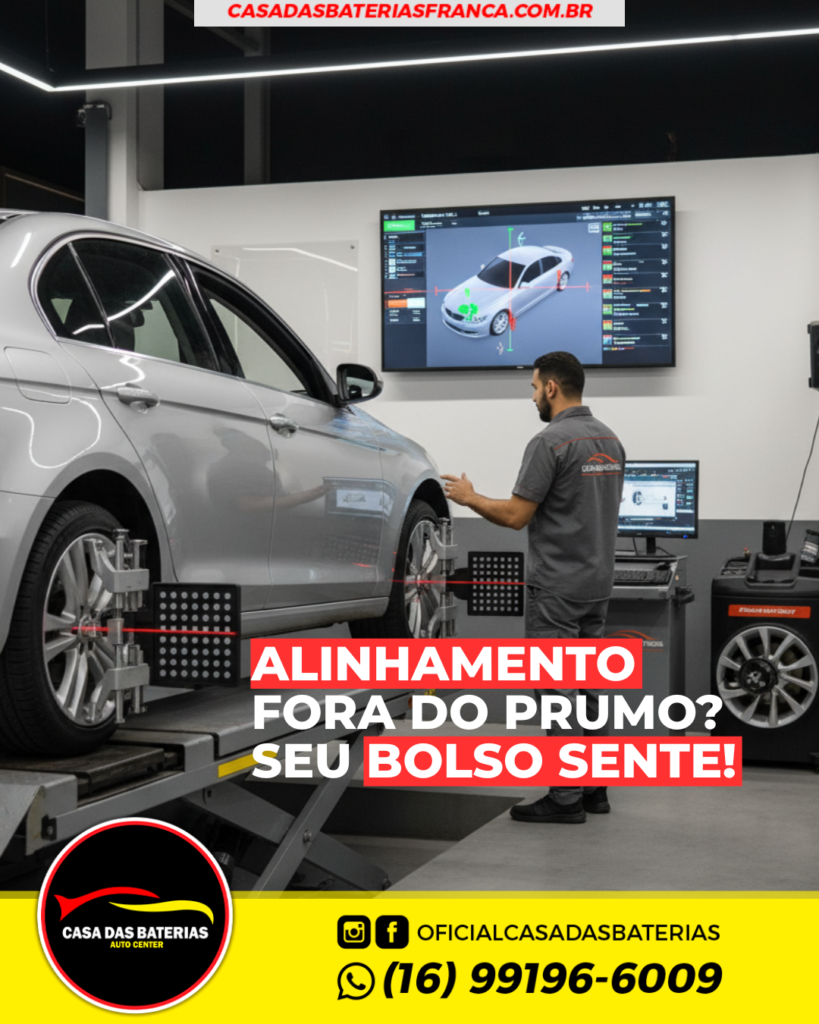 Na Casa das Baterias, realizamos alinhamento e balanceamento em Franca com equipamentos modernos e precisão total. Seu carro volta a rodar com estabilidade e você economiza a longo prazo.