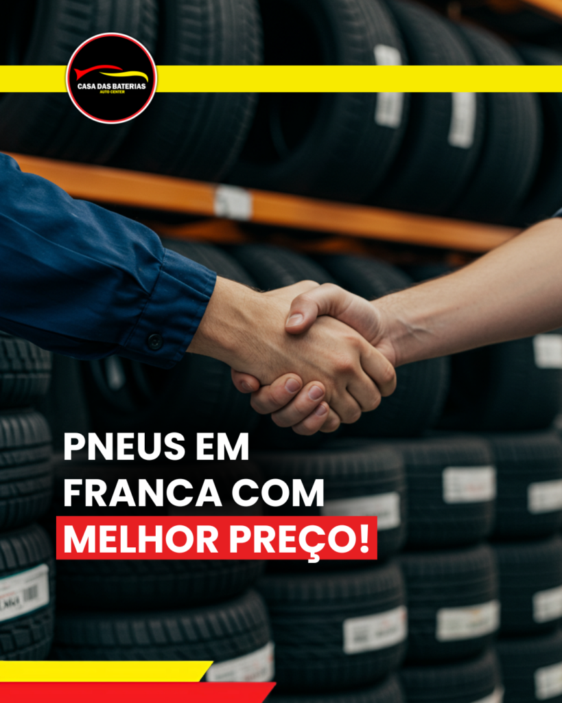Aqui na Casa das Baterias, além de baterias automotivas de confiança, você encontra pneus de qualidade para seu veículo. Trabalhamos com diversas medidas, alinhamento e balanceamento para que seu carro rode suave e seguro pelas ruas de Franca. Tudo em um só lugar, para facilitar sua vida.